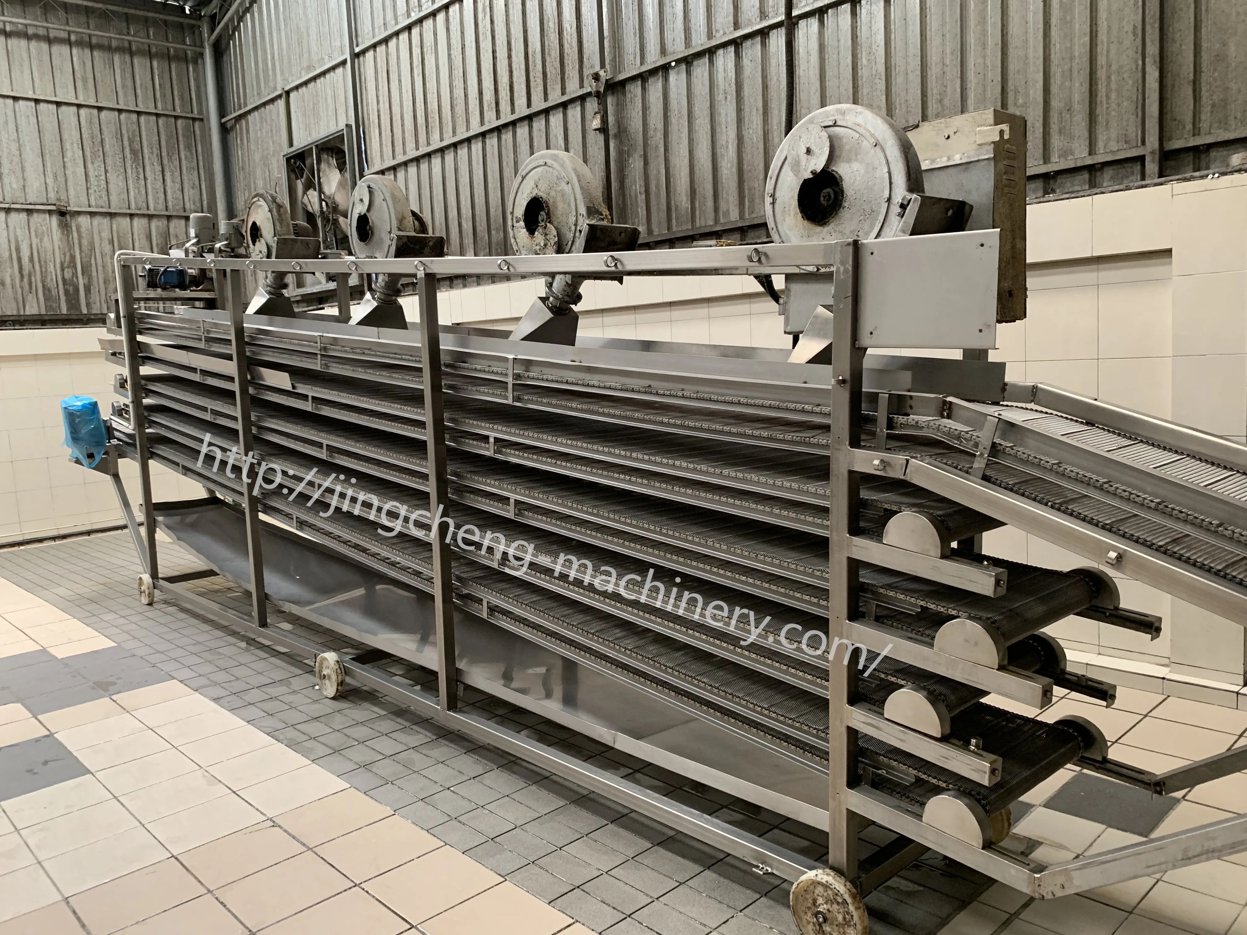 WIDTH:200-1500MM MATERIAL: SUS304 FUNCTION: TO COOL NOODLES AFTER BOILING MAIN PARAMETERS: FIVE LAYERS MESH RUNNING 0.37KG FANS ON TOP